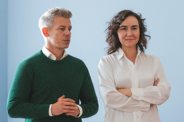 Péter Magyar, leader of Hungary’s Tisza party, and Olena Lavriukova, CEO of Goland Hungary Kft.